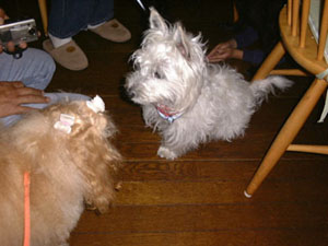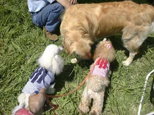 | 一芸に出た。。でもやりたくないもん。。 | ボクは退屈だしぃ〜〜大きいお兄ちゃんをクンクン | 真理音兄ちゃんも弟の後からクンクン | 「おしゃれさんで賞」をいただいた。今回は成績悪くてごめんね。。 |
