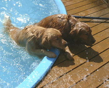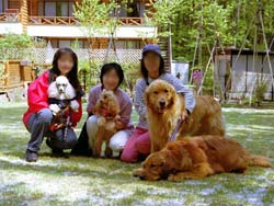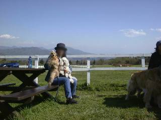 | ねぇ〜〜ママぁ〜〜と言ってる麗音・固まって目が飛んで、膝に収まってる真理音、対照的な兄弟である。 | もう1頭のルナお姉ちゃん、お顔が写っていなくてごめんちゃいですぅ〜〜 | 安芸君と斗望君はドッグプールで泳いだんだよ。。カッコ良かったぁ〜 | ドッグランで記念撮影ですぅ〜〜 |