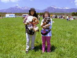 | 一緒に乗って行ってもらったAさんと | ママと。。。 | 偶然、いちごちゃんとママに会えたよ。。残雪の八ヶ岳をバックに。 | WANパも終り急いで次へ〜 |